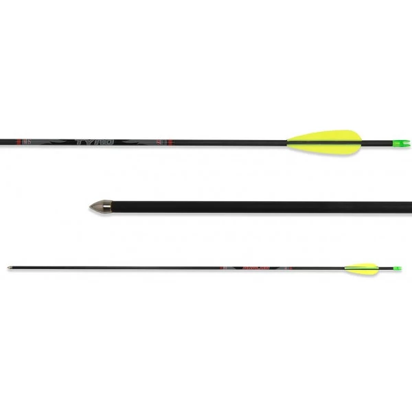 - Les accessoires inclus sont: viseur, corde avec protecteur de doigt, repose-flèche, protège-bras, fausse corde, 3 flèches en carbone, housse souple