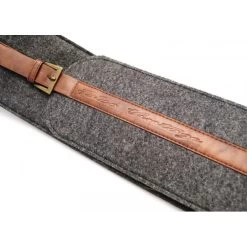 - Des deux cĂ´tĂ©s, le feutre est complĂ©tĂ© par une bande en (faux) cuir qui s’Ă©tend sur toute la longueur du sac et Ă un cĂ´tĂ© comporte une fermeture Ă boucle de ceinture pour maintenir l’arc en toute sĂ©curitĂ© Ă l’intĂ©rieur du sac.